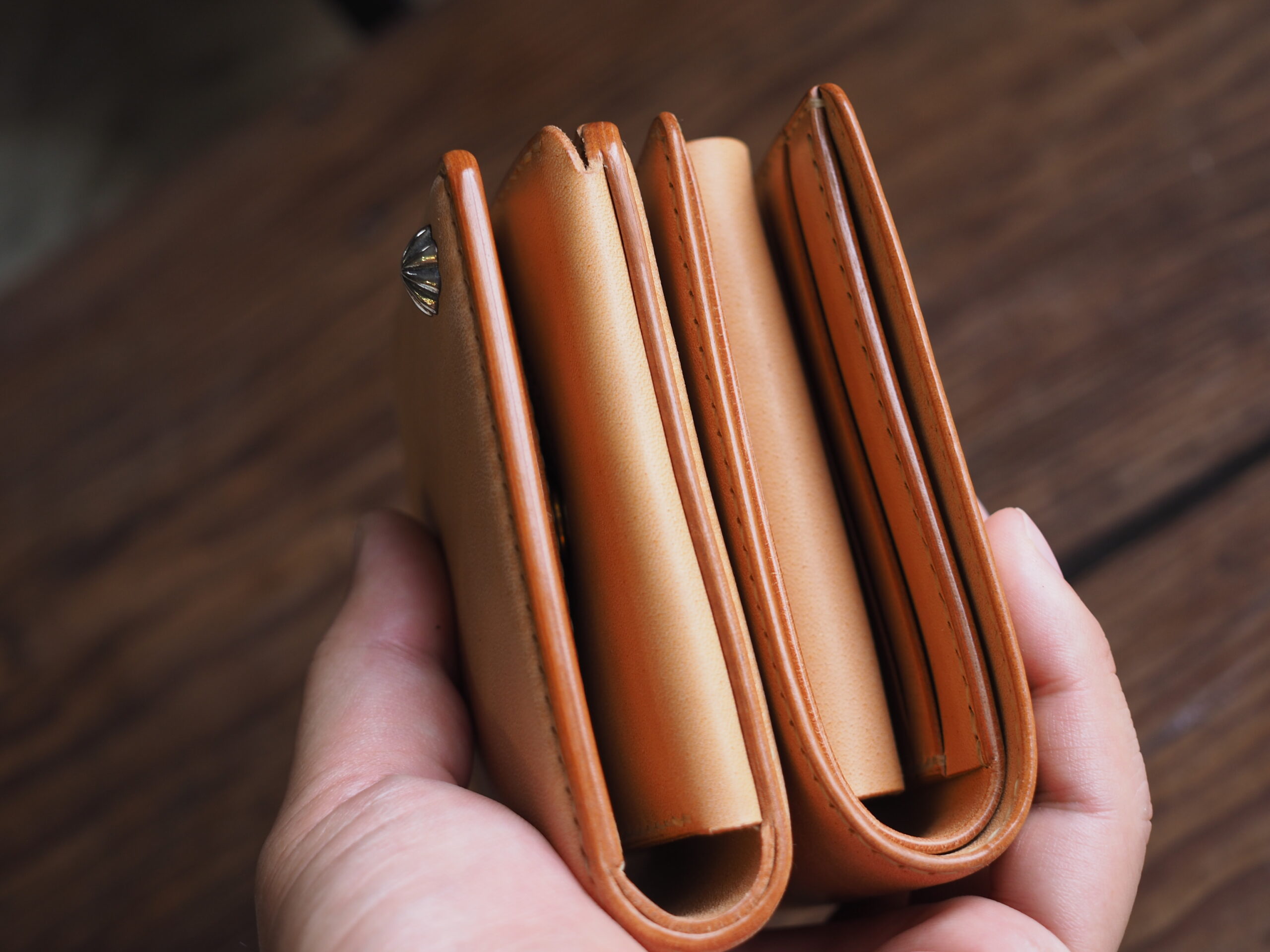 世の中に多く出回るシンプルな二つ折りウォレットを、