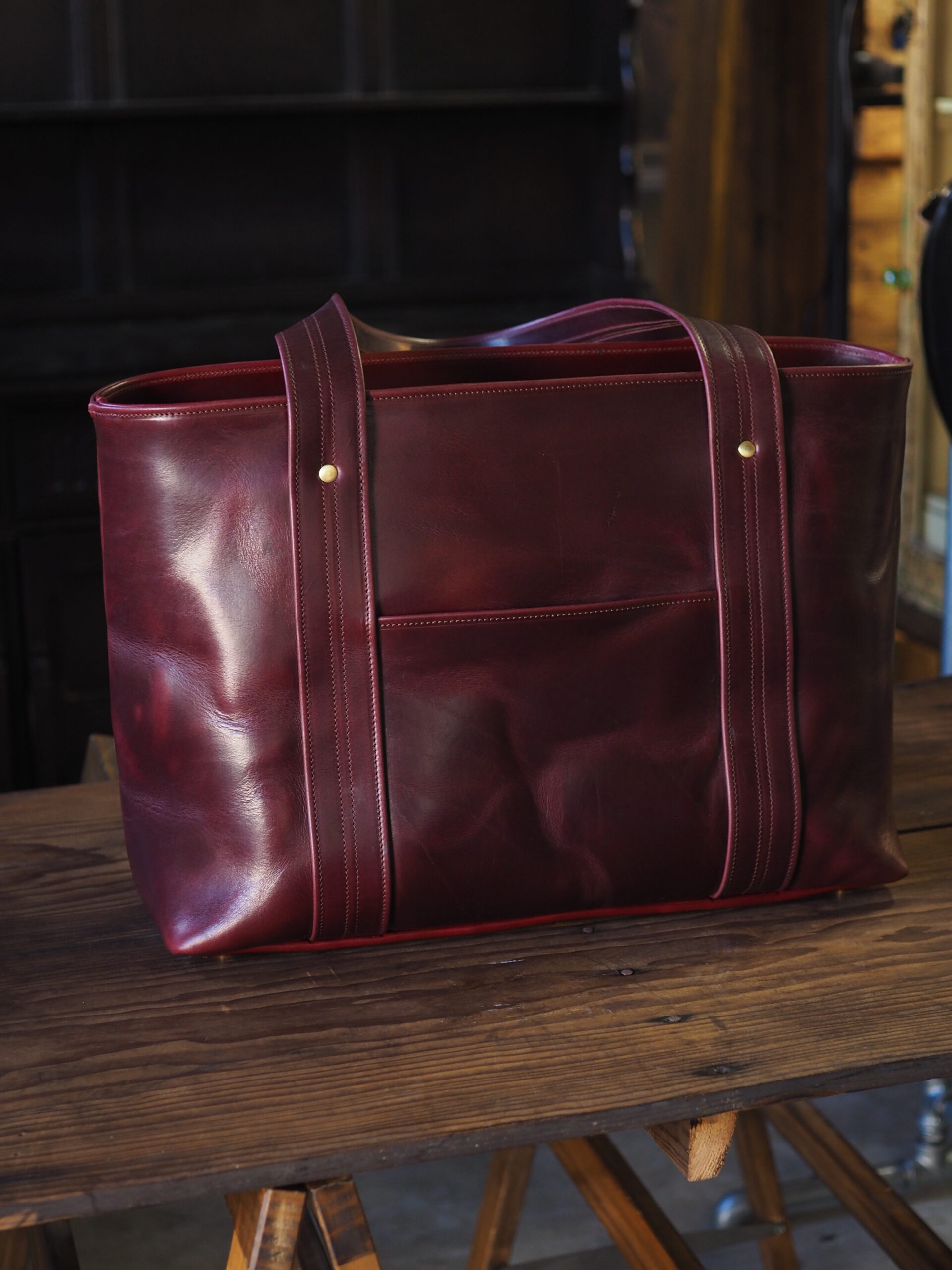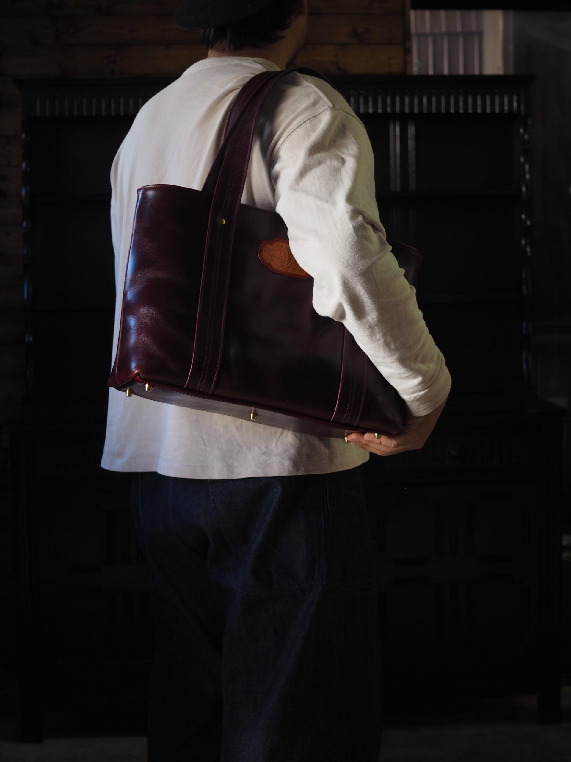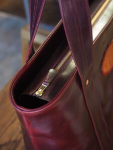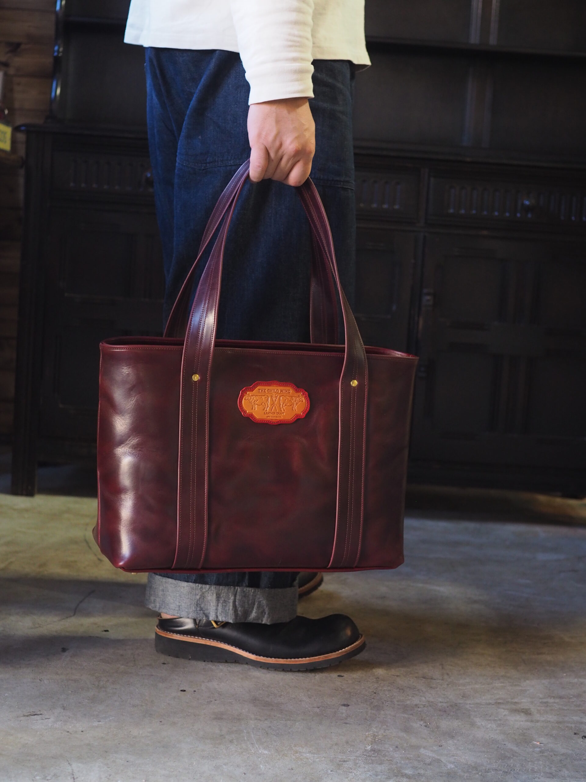 アメカジスタイルを完成させるトートバッグ。 素材には、ワークブーツと同じホーウィン クロムエクセルを採用。