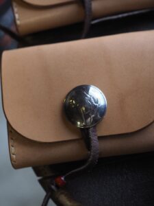 フロントにはヴィンテージコインのコンチョと鹿紐留めを採用し、 シンプルな中にもTHE CHILD MINDらしい存在感を添えています。