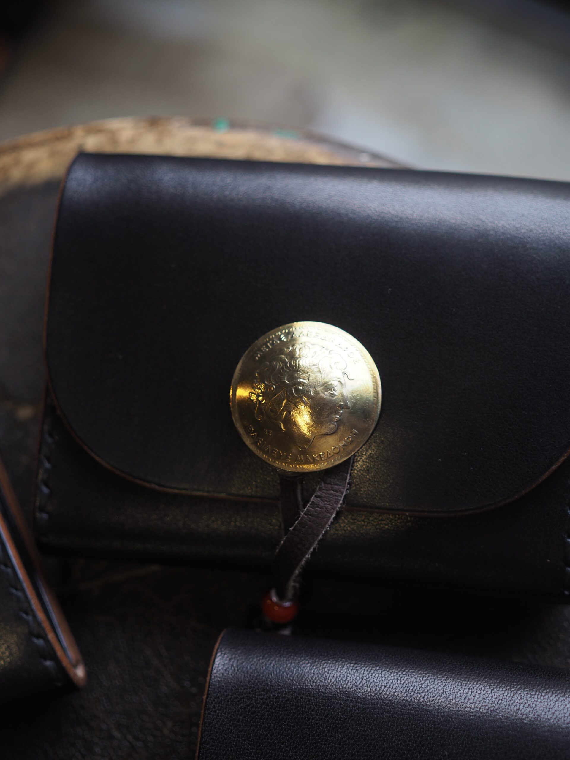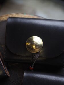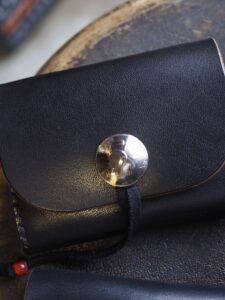 フロントにはヴィンテージコインのコンチョと鹿紐留めを採用し、 シンプルな中にもTHE CHILD MINDらしい存在感を添えています。