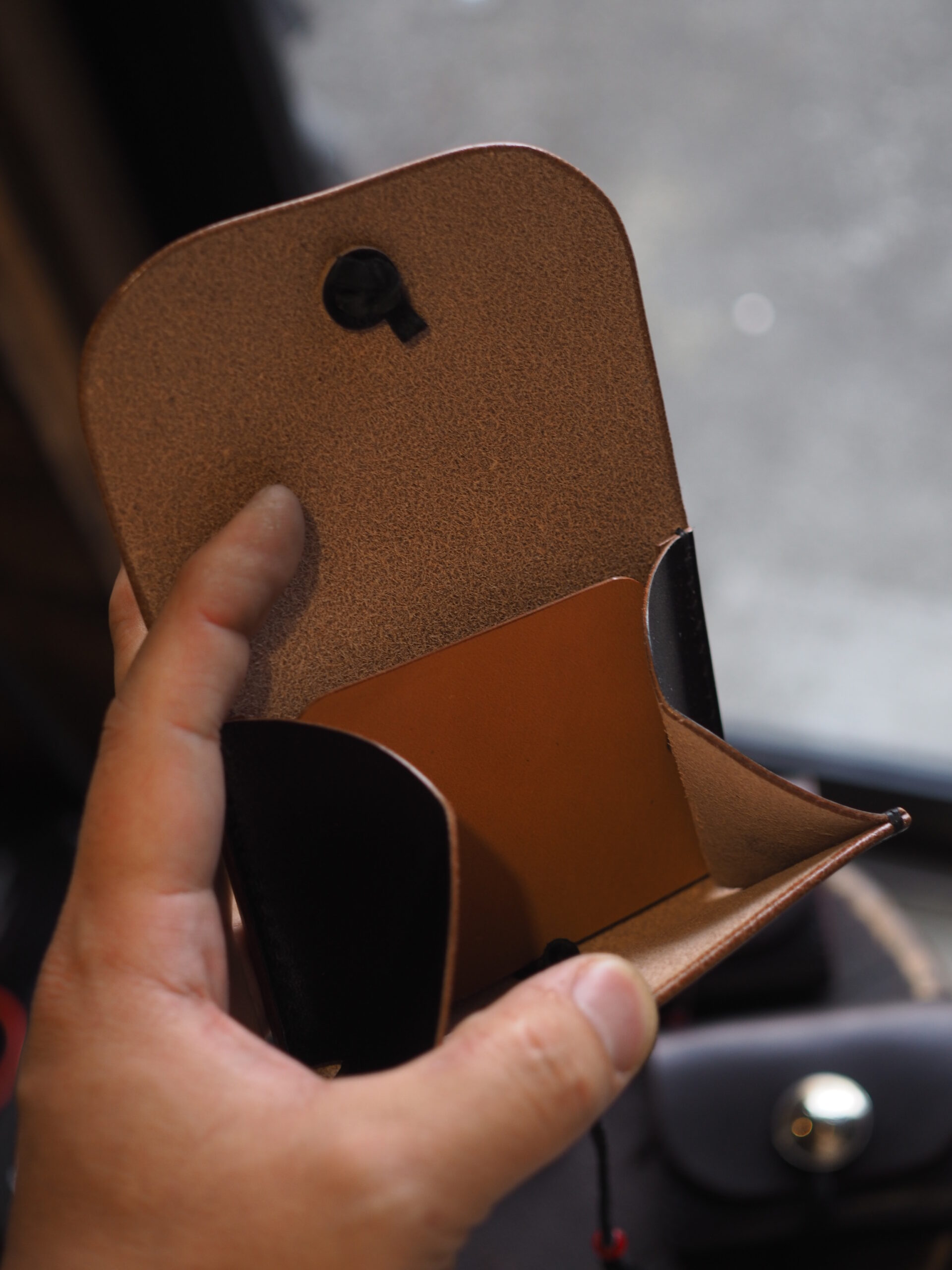 開いたときにマチ部分が前面から少しだけ見えるデザインもポイン ト。 機能ではなく“意匠”としてのマチ。このさりげない一手が、