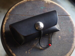 厳選した高品質レザーを贅沢に使用したメガネケースです。 フラップの中央には表情豊かなヴィンテージコインコンチョを配置