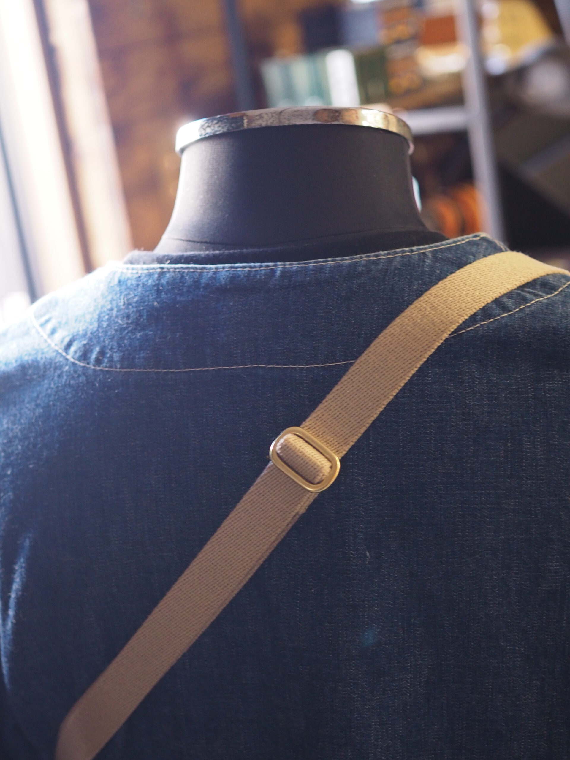 ストラップにはあえて布素材を組み合わせ、重厚なレザーを“