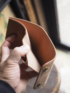 お札は1万円札がぴったり入る設計になっております。敢えて横に出して使用するのもあり。