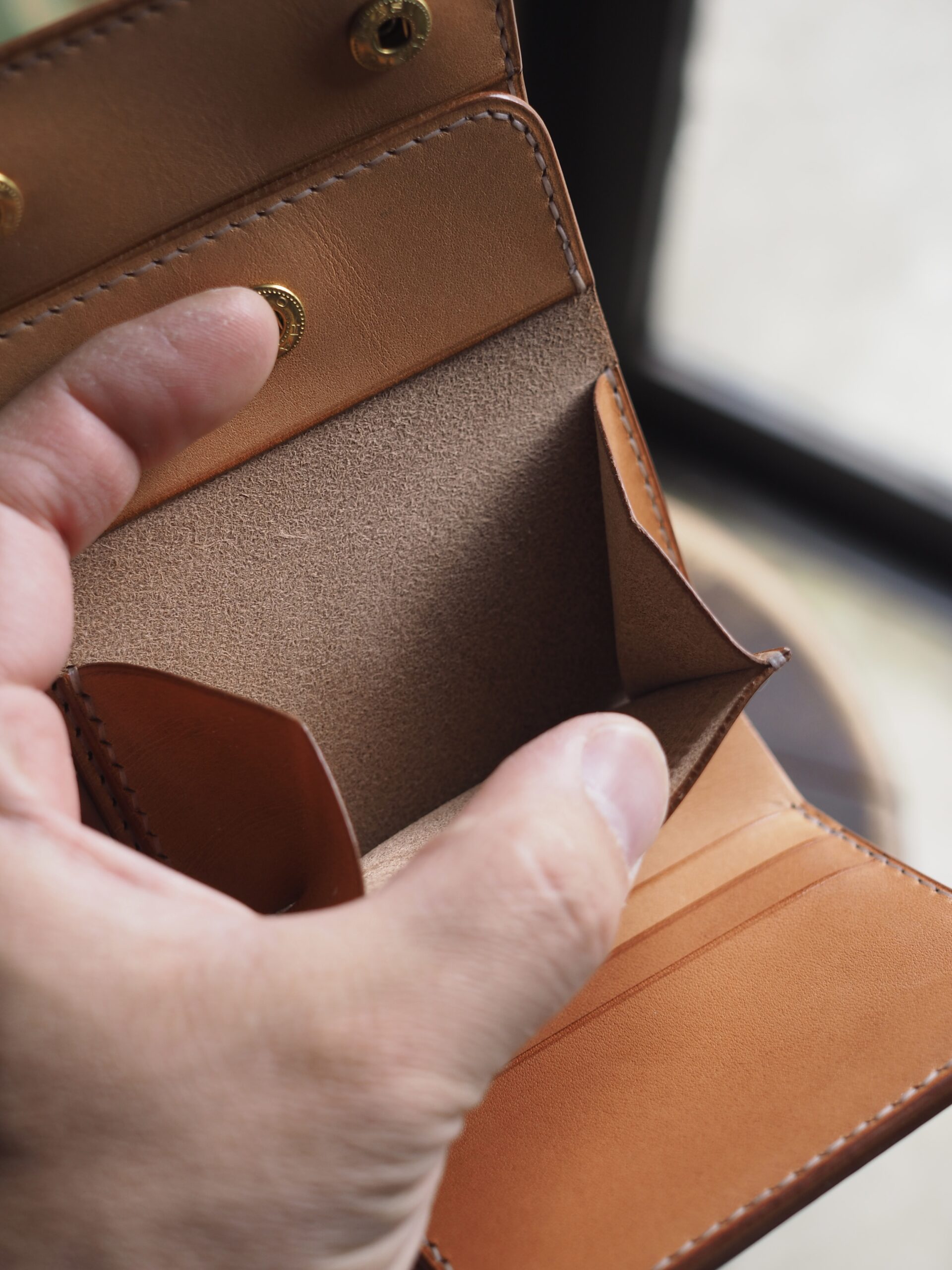 内装は至ってシンプル。コインケースの裏に隠し収納が1つあります。