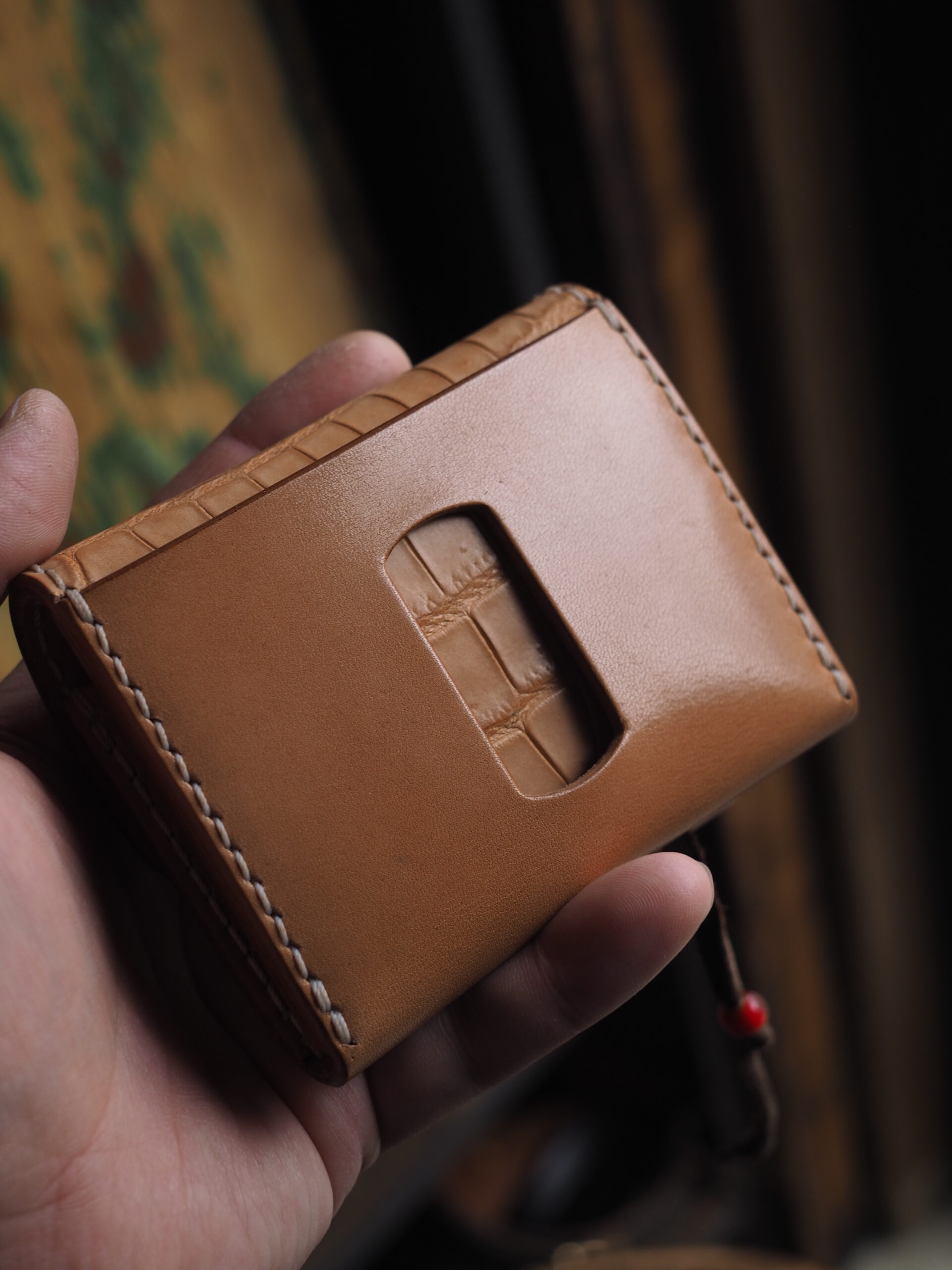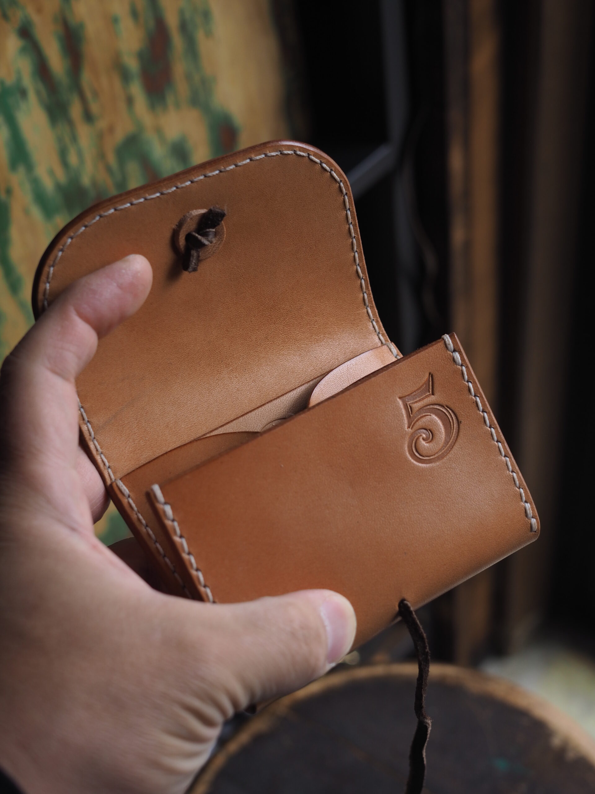 背面のカードケースは下部にステッチを入れない構造にすることで