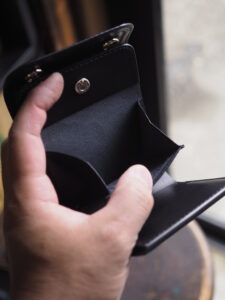内装は至ってシンプル。コインケースの裏に隠し収納が1つあります。