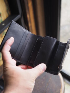 お札は1万円札がぴったり入る設計になっております。敢えて横に出して使用するのもあり。