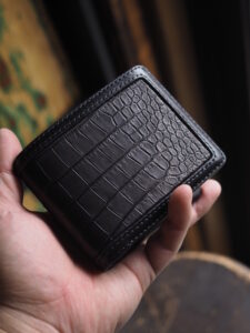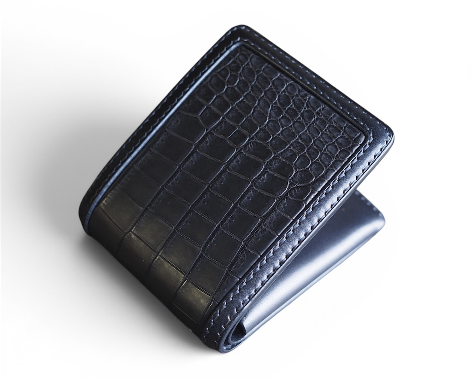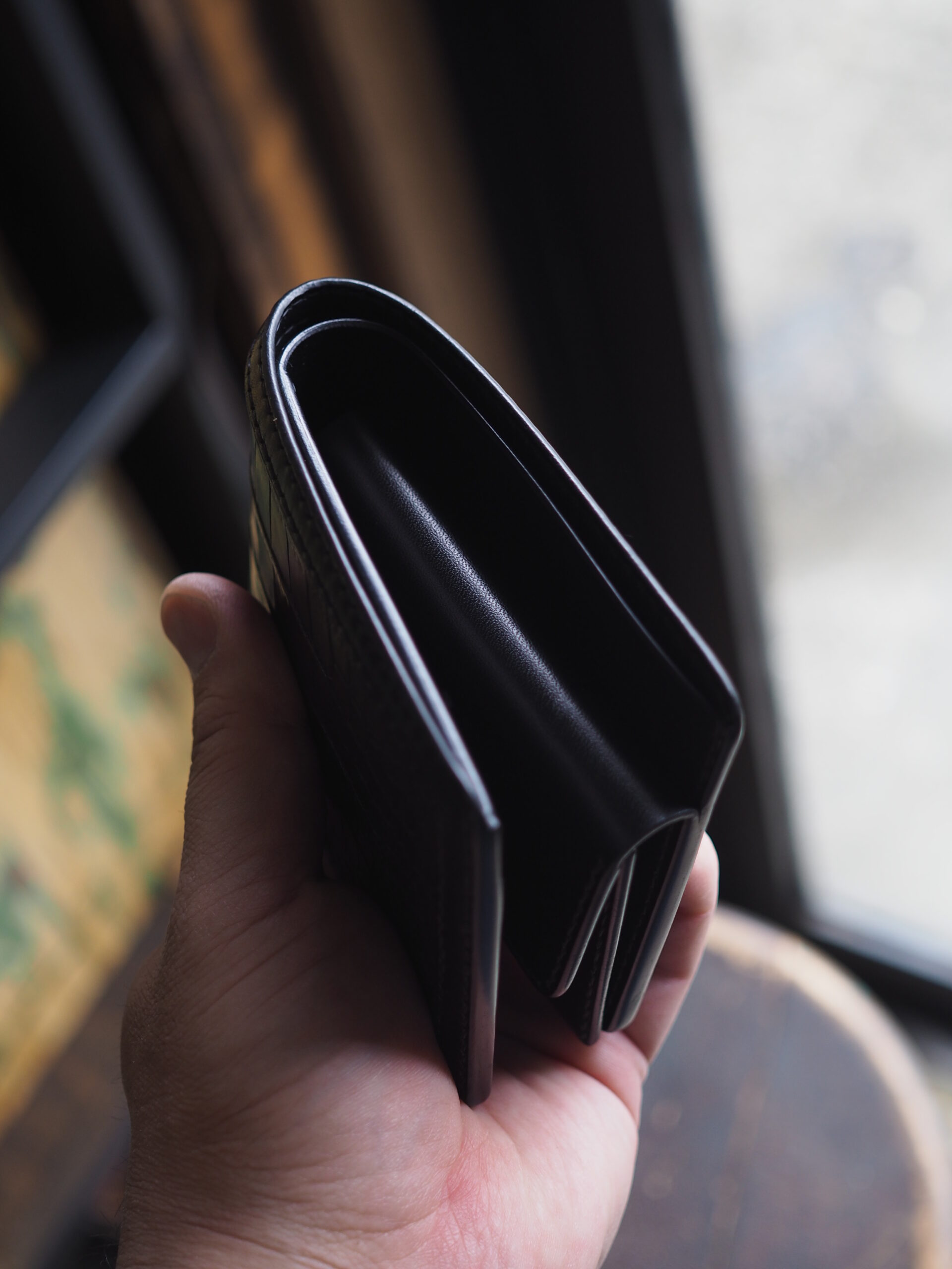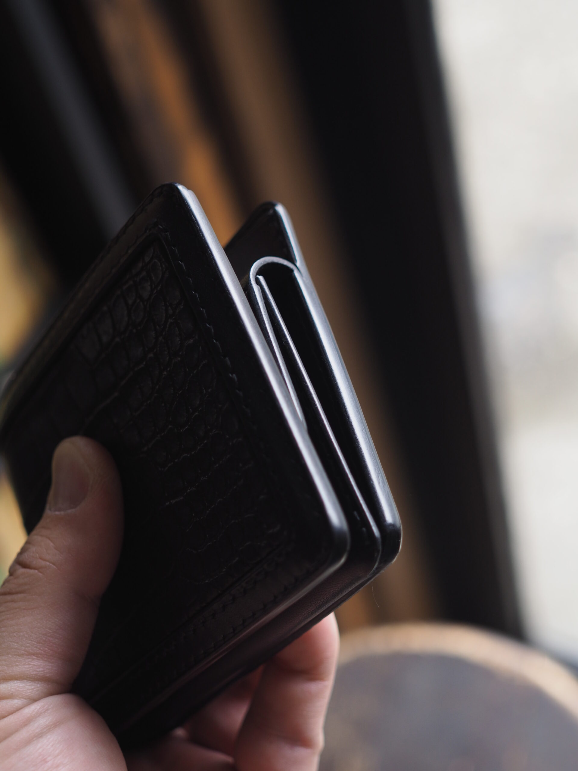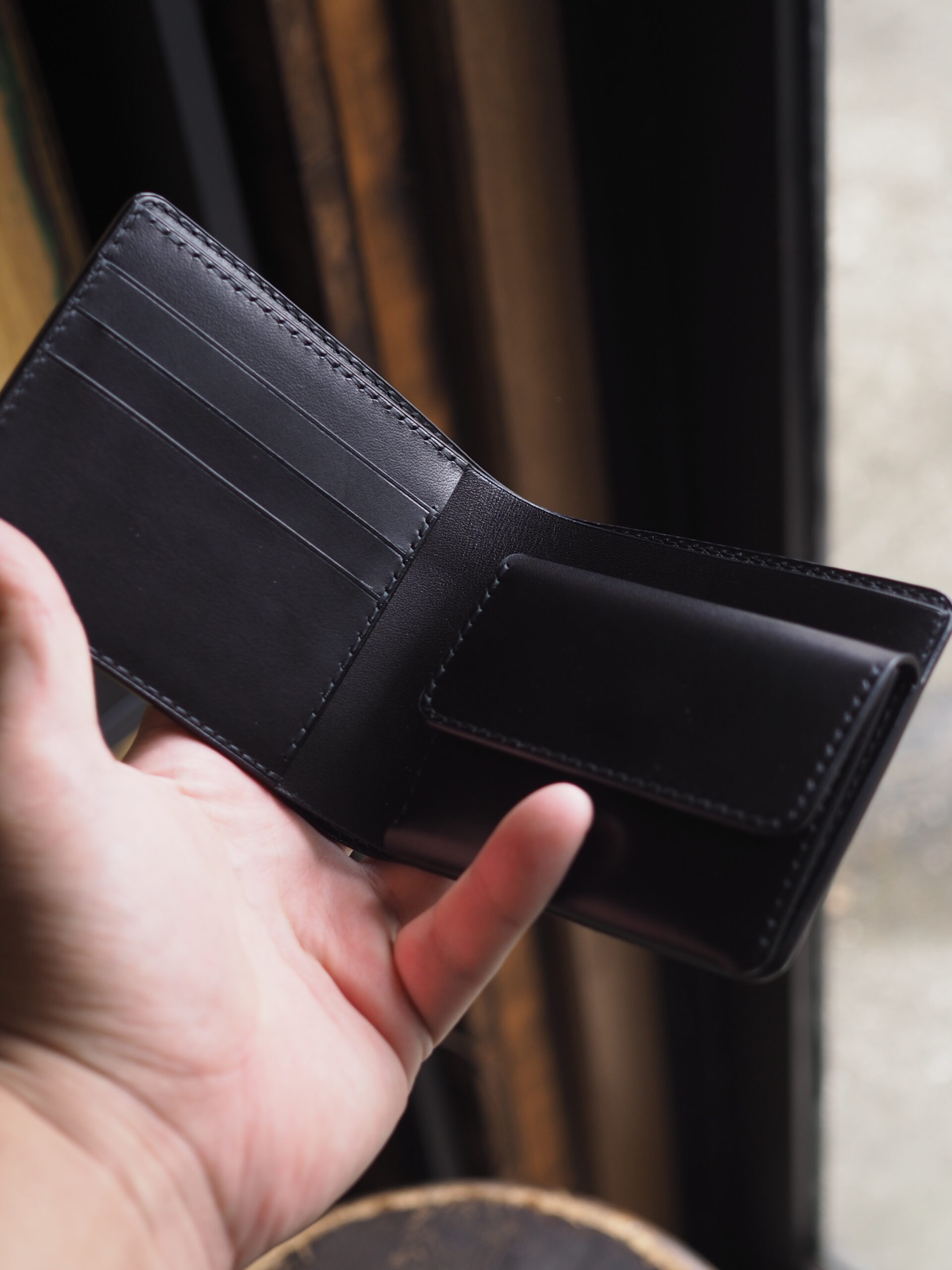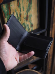 世の中に多く出回るシンプルな二つ折りウォレットを、