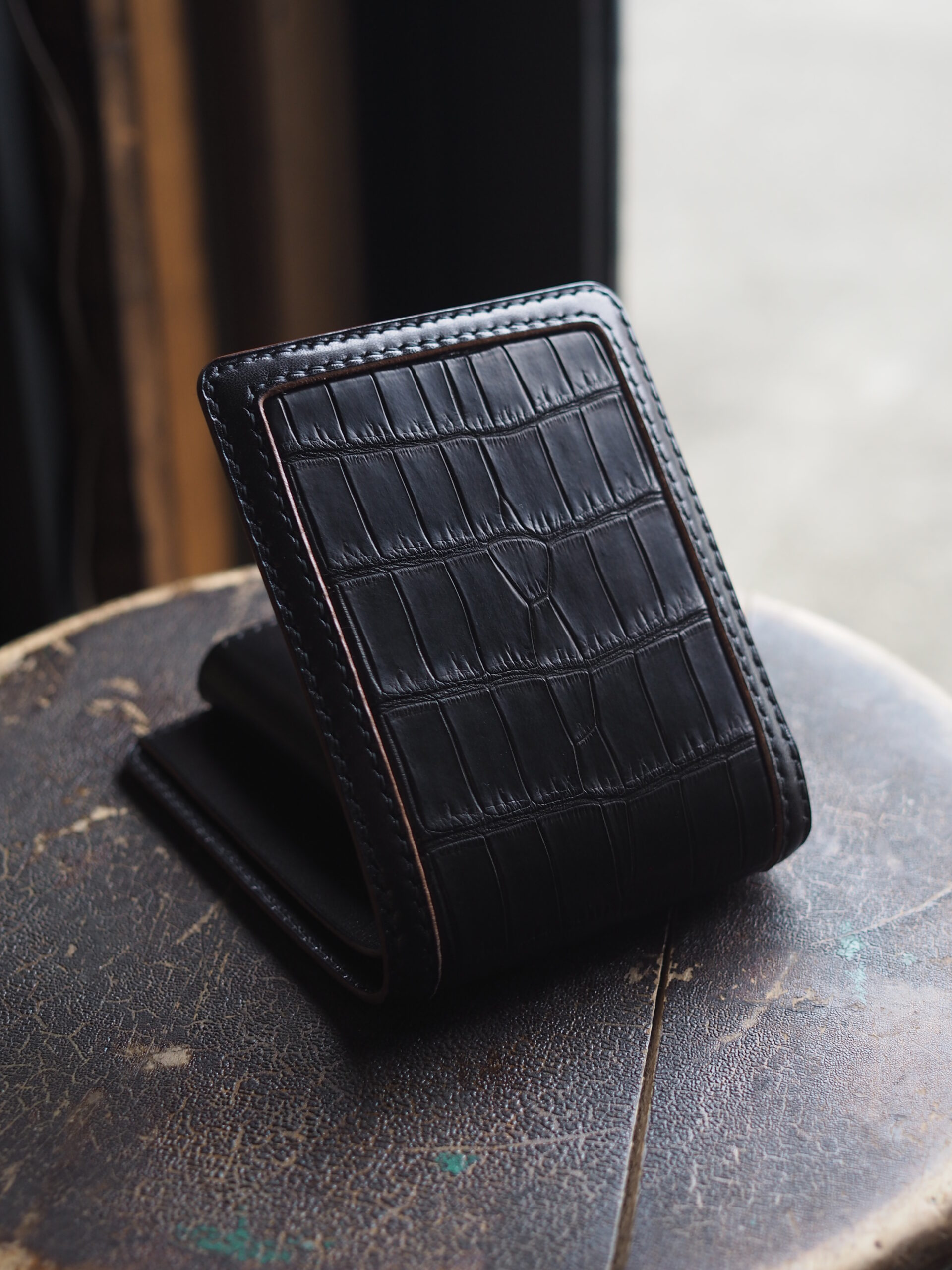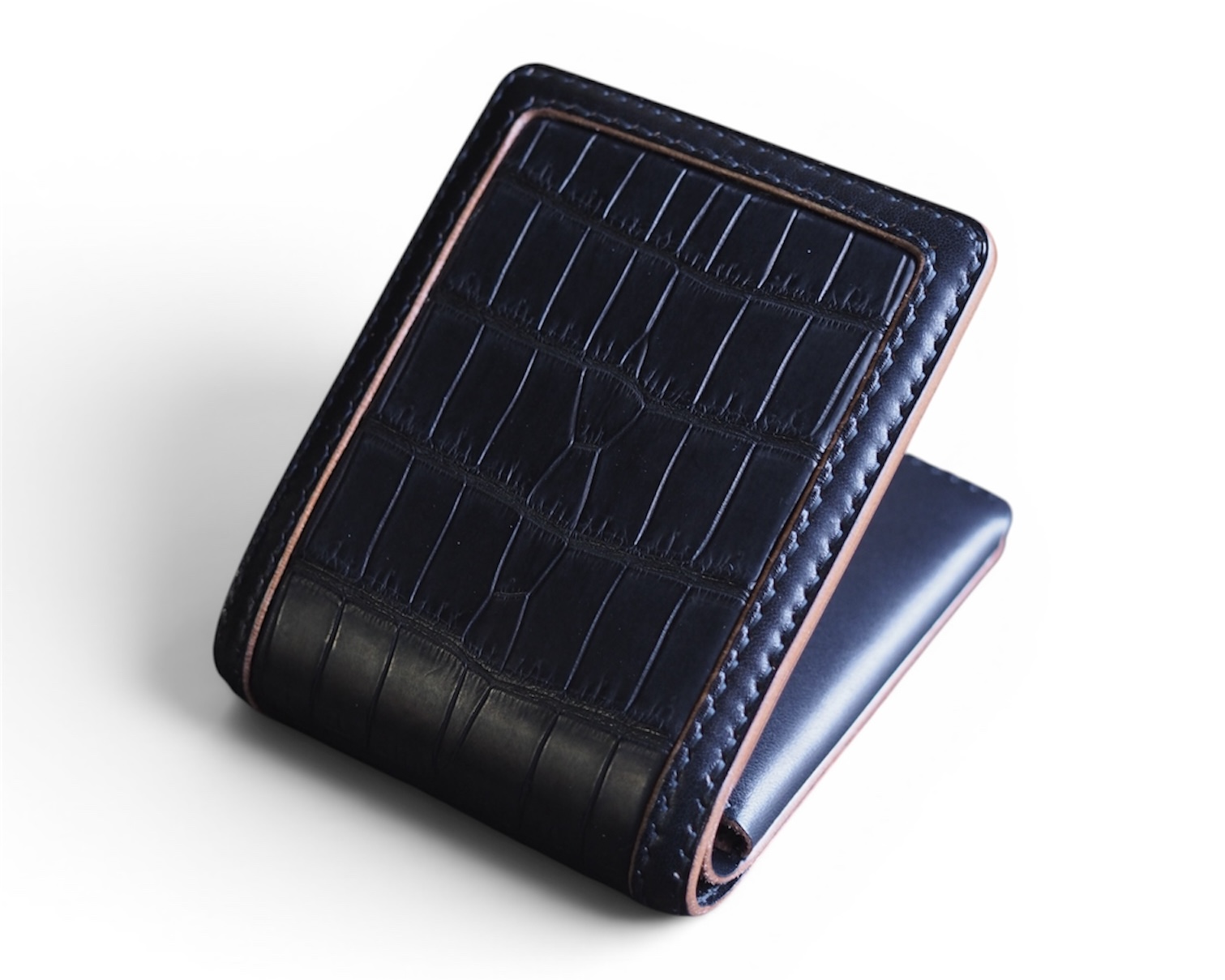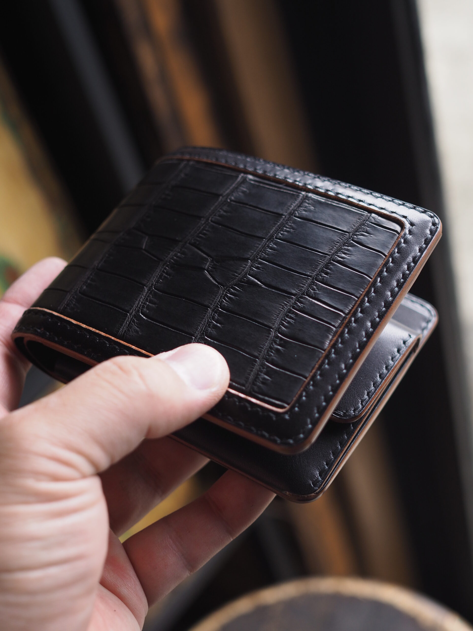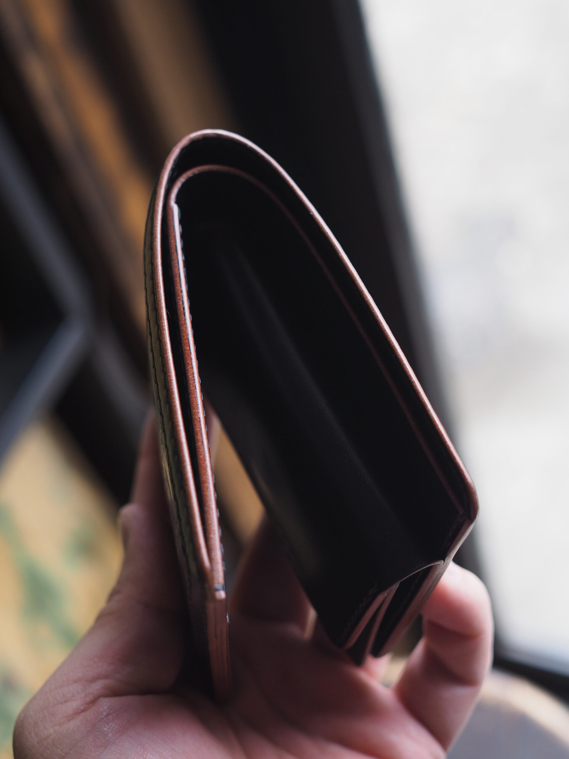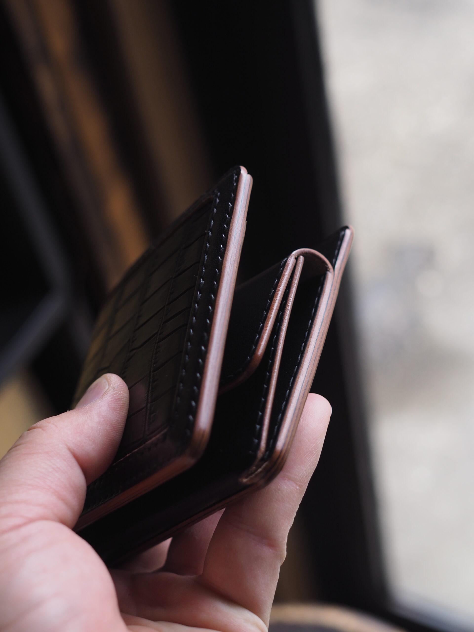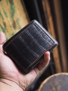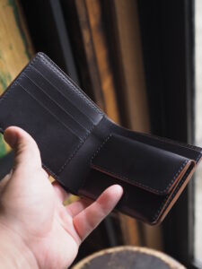 世の中に多く出回るシンプルな二つ折りウォレットを、