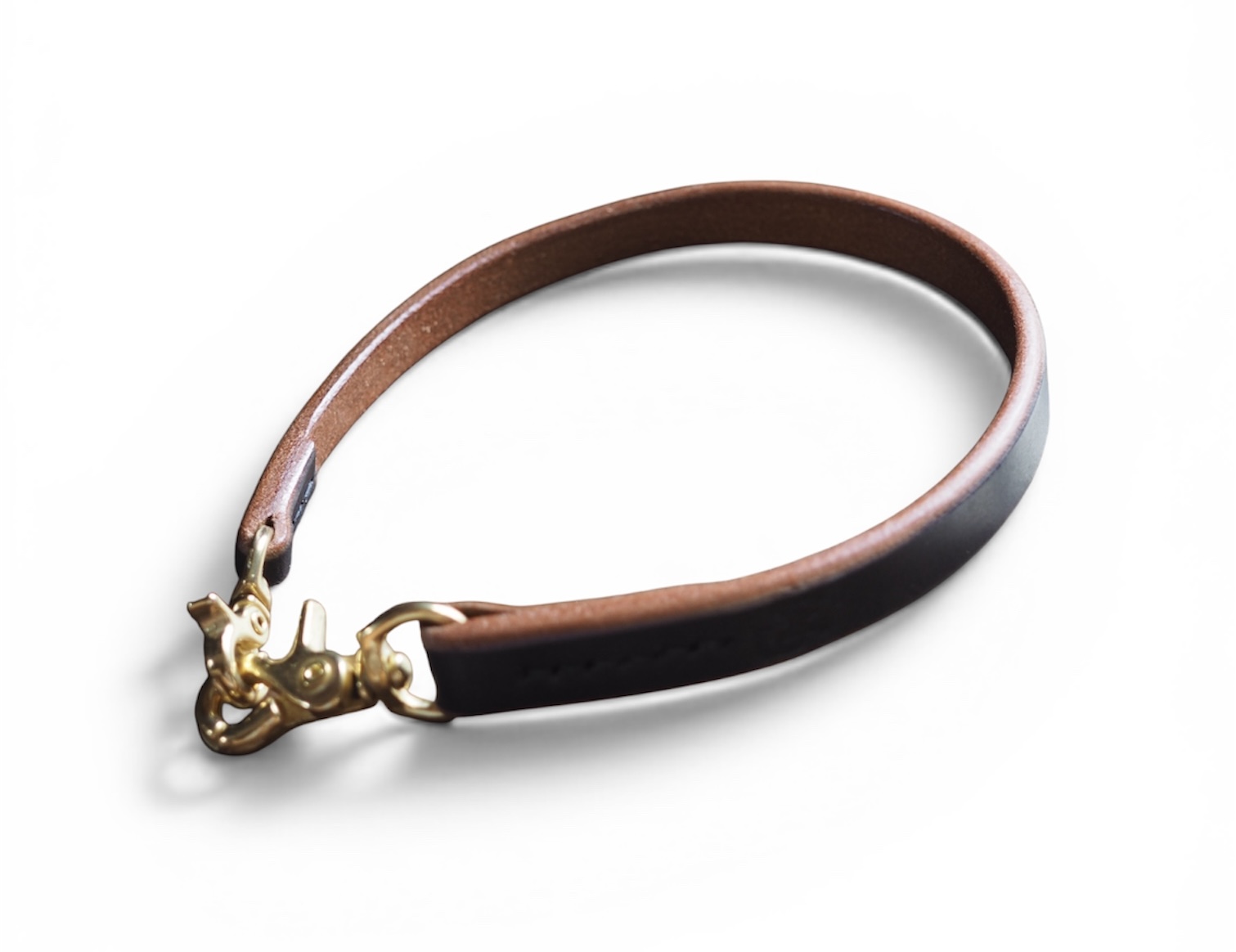 この極厚ベンズを使用しているため、1枚革でも耐久性に優れております。また、5㎜という厚みは編むタイプのロープにはない独特の無骨さを醸し出します。